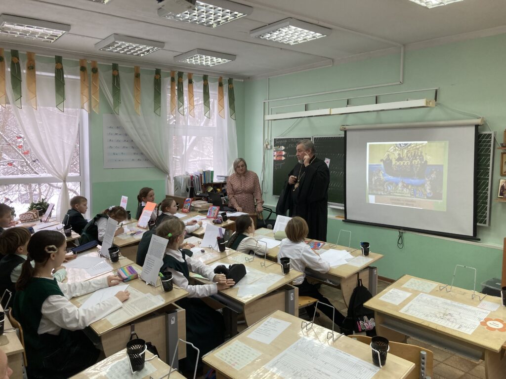 28 января настоятель Иоанно-Богословского храма с. Сынково протоиерей Александр Харламов принял участие в работе Секции «Духовник в православной школе» (совещание духовников православных образовательных организаций), проходящей в рамках работы XXXIV Международных Рождественских образовательных чтений. Более 30 священников из разных регионов России собрались в стенах НОЧУ «Православный Центр непрерывного образования во имя преподобного Серафима Саровского» г. Москвы. На этой встрече священники поделились своим пастырским опытом. После совещания духовники были приглашены на занятия в начальной школе. Протоиерей Александр Харламов посетил урок «Основы православной веры». В конце занятия отец Александр обратился к детям и ответил на их вопросы.