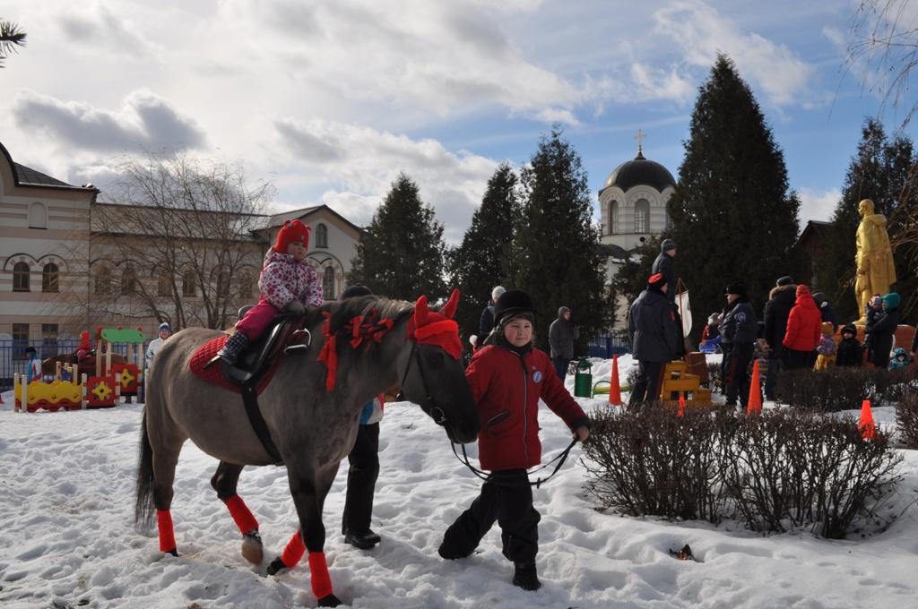 На масленичной неделе прихожане храма Иоанна Богослова, дети и взрослые, приняли участие в нескольких мероприятиях: спортивно-полевом выходе в д. Товарищево, просмотре спектакля «Судьба одного дома» в театре Российской Армии, праздничных масленичных гуляниях в конном клубе «Лаир».